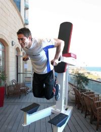 עמידת מוצא – מניחים רגליים על גבי כדור כושר, כאשר גב כף הרגל נשען במצב פוינט. פלג גוף עליון מוטה כלפי המזרון, הידיים מיושרות מעט מעבר לרוחב הכתפיים, כפות הידיים נשענות על המזרון. הגוף ישר ומשקלו נשען על הידיים והכדור. בנשיפה – מכופפים את המרפקים ויורדים באיטיות לעבר המזרון, גם בתרגיל זה יש לרדת עד להפרש של אגרוף בין החזה והמזרון. בשאיפה – עולים לעמידת המוצא, על ידי יישור המרפקים. יש להקפיד לא לנעול את המרפקים ולשמור על גב ישר. מבצעים את התרגיל כ-15 פעם, נחים כ- 30 שניות ומבצעים שני סטים נוספים.